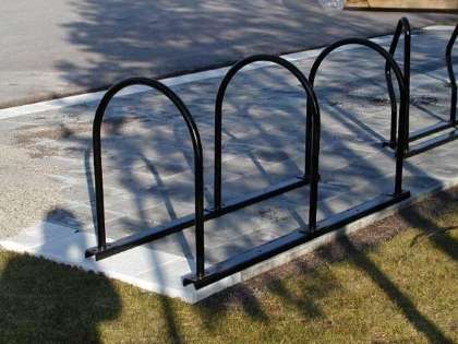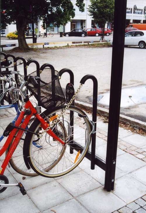 Cykelställ: Förzinkad pulverlackerat stål. Tillåter låsning både på ram och ljul. Kan levereras upp till 12 meter i sektioner om 3 meter. 1-sidig eller 2-sidiga.