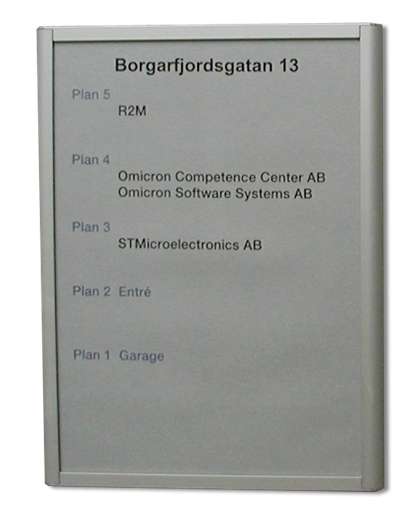 InfoSign är en infohållare för de vanligaste A-pappersformaten. Informationen får vara i fred genom dolda fjäderbleck.