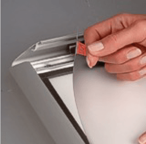 SafeSnap är en säker och funktionell Snäppram tillverkad av underhållsfria aluminiumprofiler för inom och utomhusbruk, öppnas med hjälp av öppningsverktyget (tillbehör). Affischen hålls enkelt på plats med de fyra öppningsbara ramprofilerna och skyddas av en 0,5 mm frontplast.